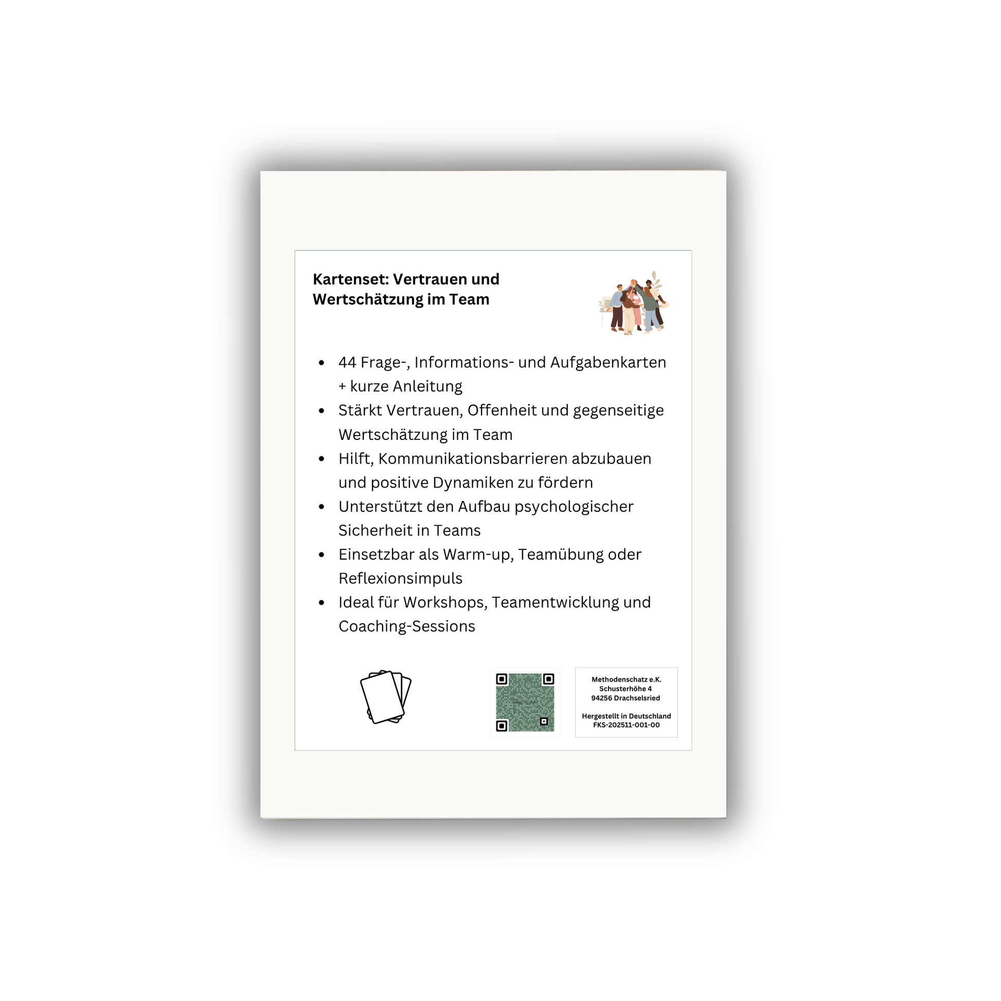 Dieses Set stärkt Vertrauen, Offenheit und gegenseitige Wertschätzung im Team. Es fördert positive Dynamiken, baut Kommunikationsbarrieren ab und unterstützt psychologische Sicherheit.